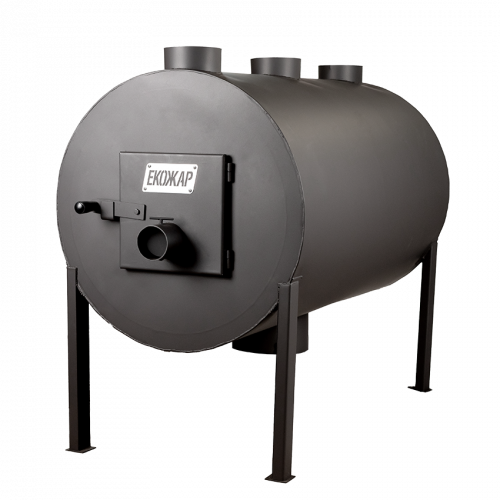Булер'ян українського виробництва Екожар Про 1000 вертикальний призначений для обігріву великих утеплених приміщень до 400 м2 або 1000 м3. Піч обладнана камерою допалювання вторинних газів: у процесі горіння деревини виділяються гази, під впливом високих температур і подавання вторинного кисню через форсунки загоряються в цій камері, підвищуючи ККД печі до 90%.