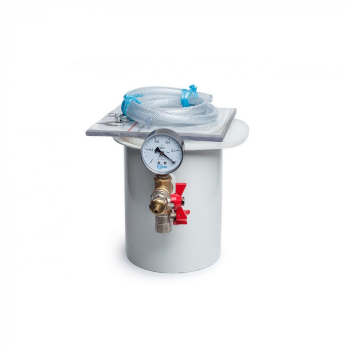 Характеристики вакуумної камери: висота — 200 мм, діаметр — 150 мм, об'єм — 3,5 літра, об'єм дегазованої речовини — 1 літр. З манометром, без насоса.